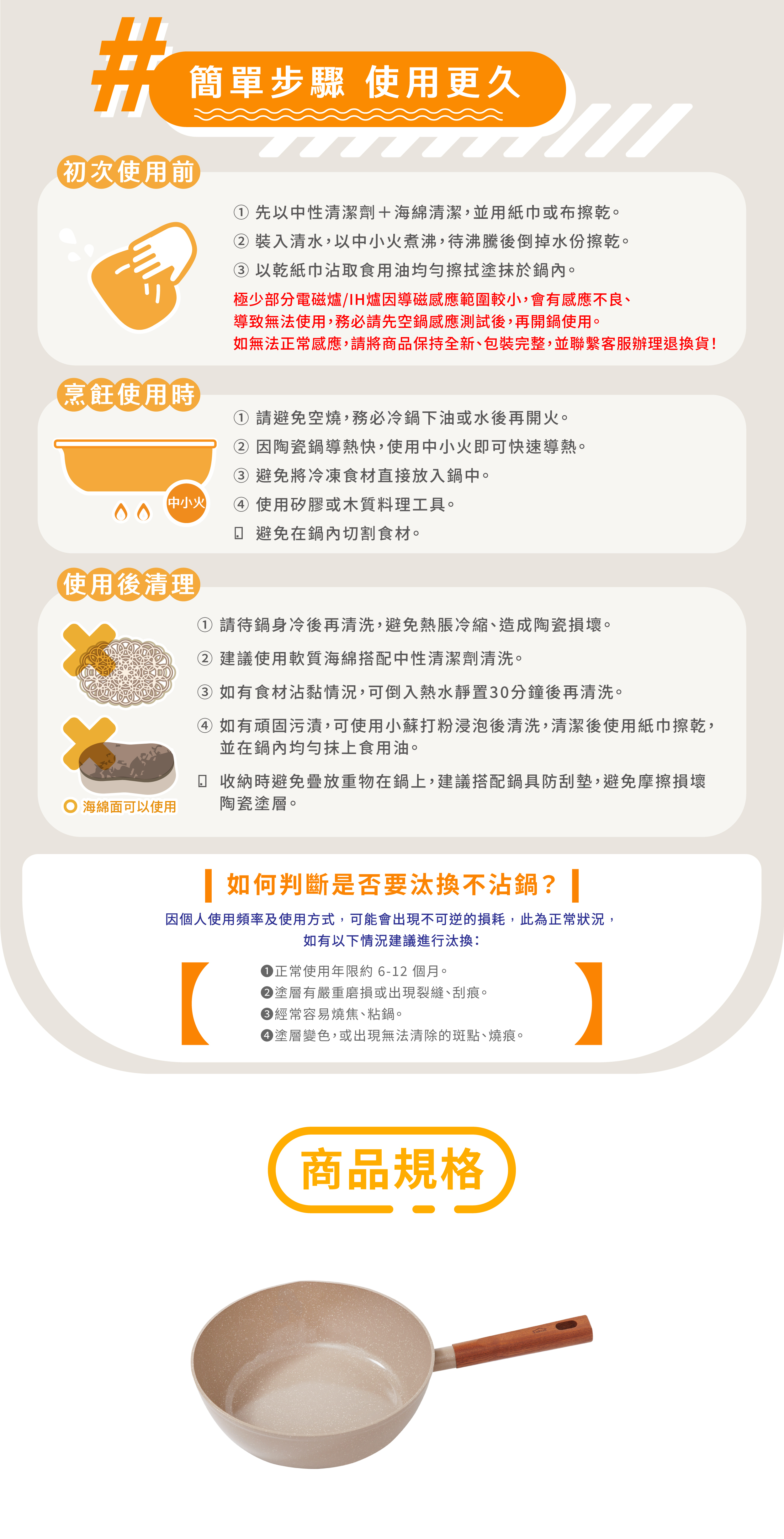 好好炒陶瓷塗層木柄炒鍋28cm-核果奶 | 材 質 |