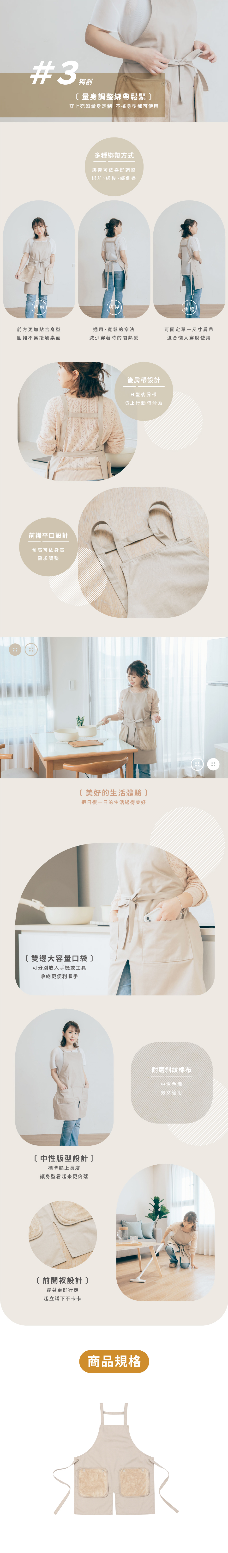 ▸ 三大獨創設計,最適宜台灣家庭使用的家事圍裙!