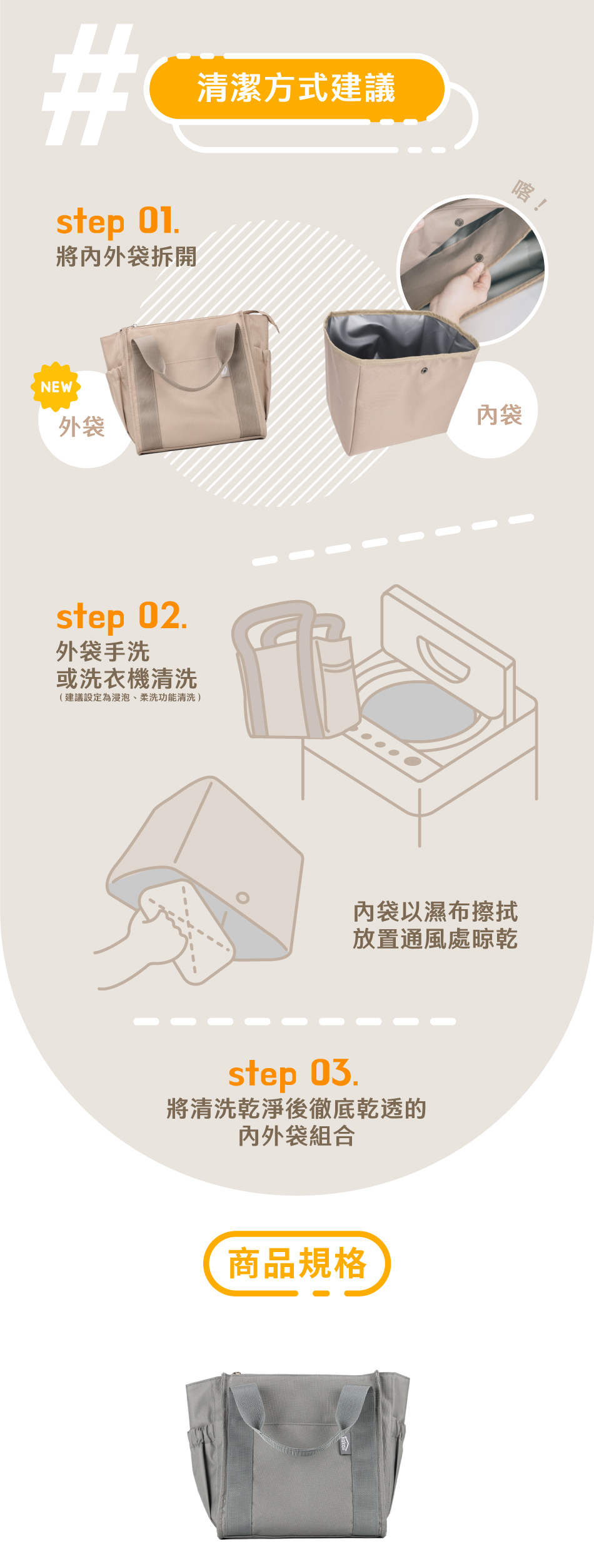 ・內袋請勿水洗,請以柔軟濕布擦拭即可。