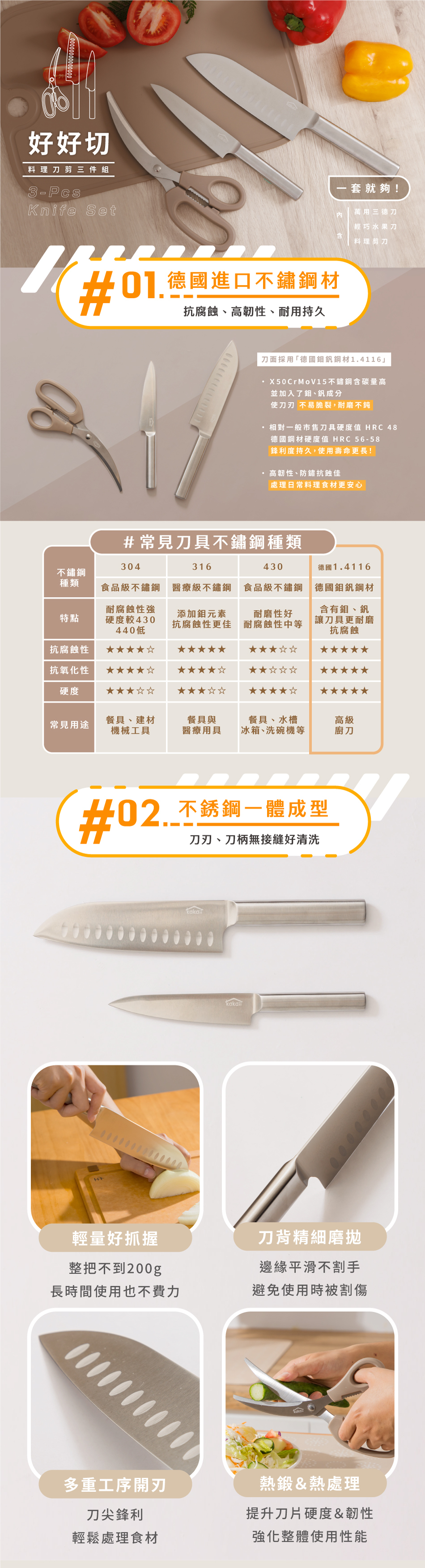 多道工序開刃,刀尖鋒利、輕鬆處理食材。