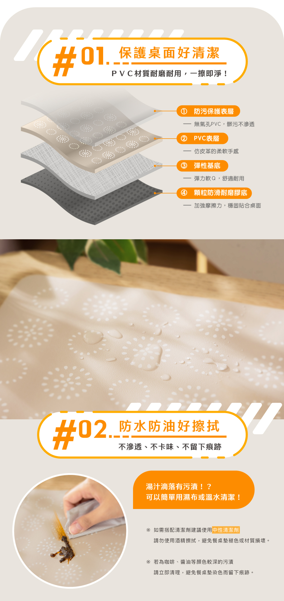 ▸ 防水、防油、防污漬,油污醬汁、一擦即淨!