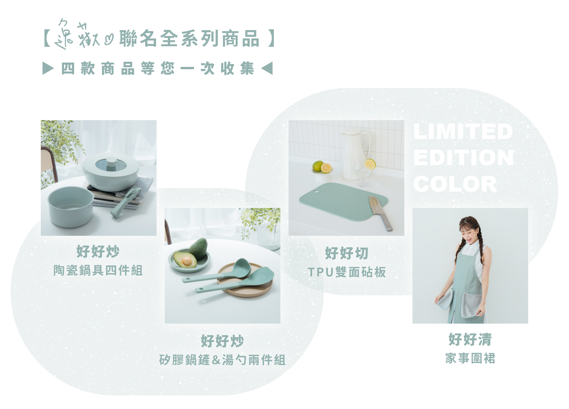 1.好好炒陶瓷不沾鍋四件組-海鹽綠