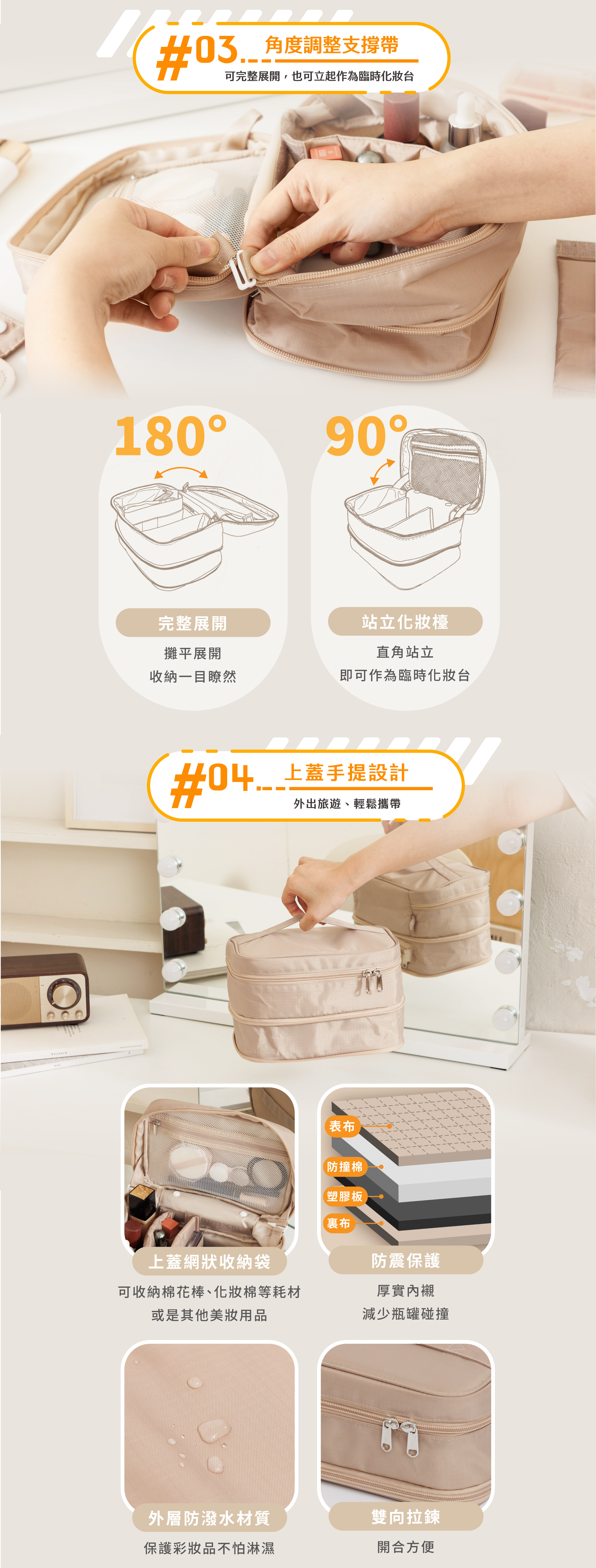 ▸ 外層防潑水材質|保護彩妝品不怕淋濕
