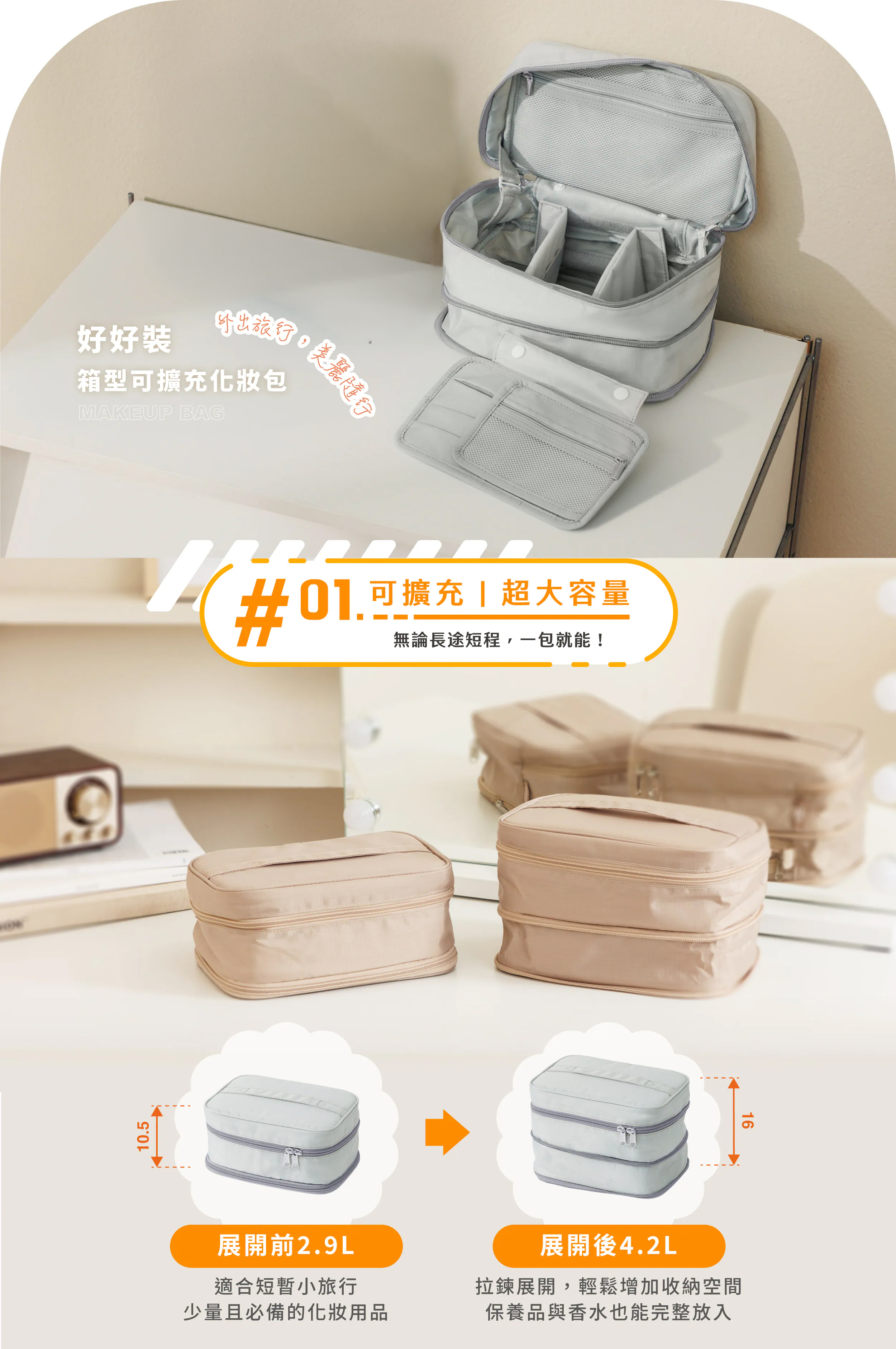 | 品 名 | 好好裝箱型可擴充化妝包 | 材 質 | 100%聚酯纖維 | 尺 寸/重 量/容 量 | 15.5 × 23 × 10.5 cm ±10% / 295g ±10% | 產 地 | 台灣設計・中國製造 | 注意事項 | ‧請勿將本產品使用於非本產品所列之用途。 ‧本產品如有髒污,建議可使用乾布沾水擰乾後擦拭表面,並於通風處陰乾。 ‧本產品請勿放入尖銳物品或用力拉扯,以免造成破損。 ‧本產品請遠離火源及高溫處,並請放置於幼兒孩童不易拿取處。 ‧本產品僅防潑水,請勿將本產品浸泡於水中或持續以水柱噴灑。 ‧請勿過度擠壓本產品或放入過重物品,以免本產品變型損壞,或者導致袋內物品損壞。 ‧初次使用可能有輕微氣味,請置於通風處數日。 ・尺寸為手工測量會有些許誤差,請依實際商品為準。 ・因各廠牌螢幕解析度、畫質設定不同,商品顏色以實際收到為主。 |