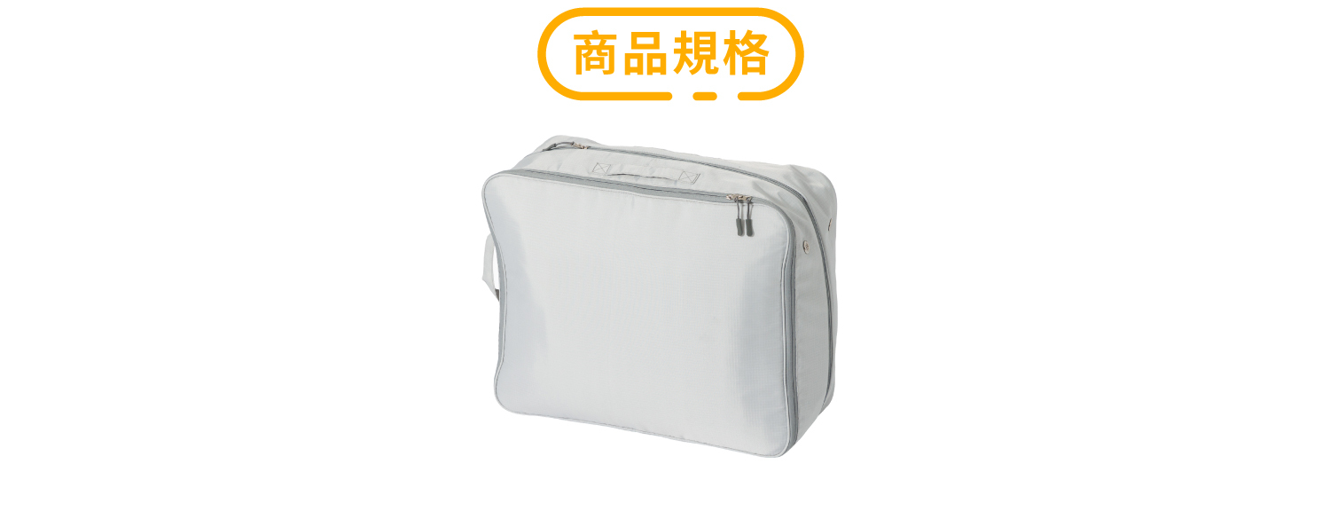 | 品 名 | 好好裝衣物寢具壓縮收納袋 | 用 途 | 棉被或衣物收納 | 數 量 | 1 入 | 材 質 | 100%聚酯纖維 | 尺 寸 | 50.5 × 40.5 × 17.5 cm±10% | 總 重 量 | 420g±10% | 產 地 | 台灣設計・監製|中國製造 |