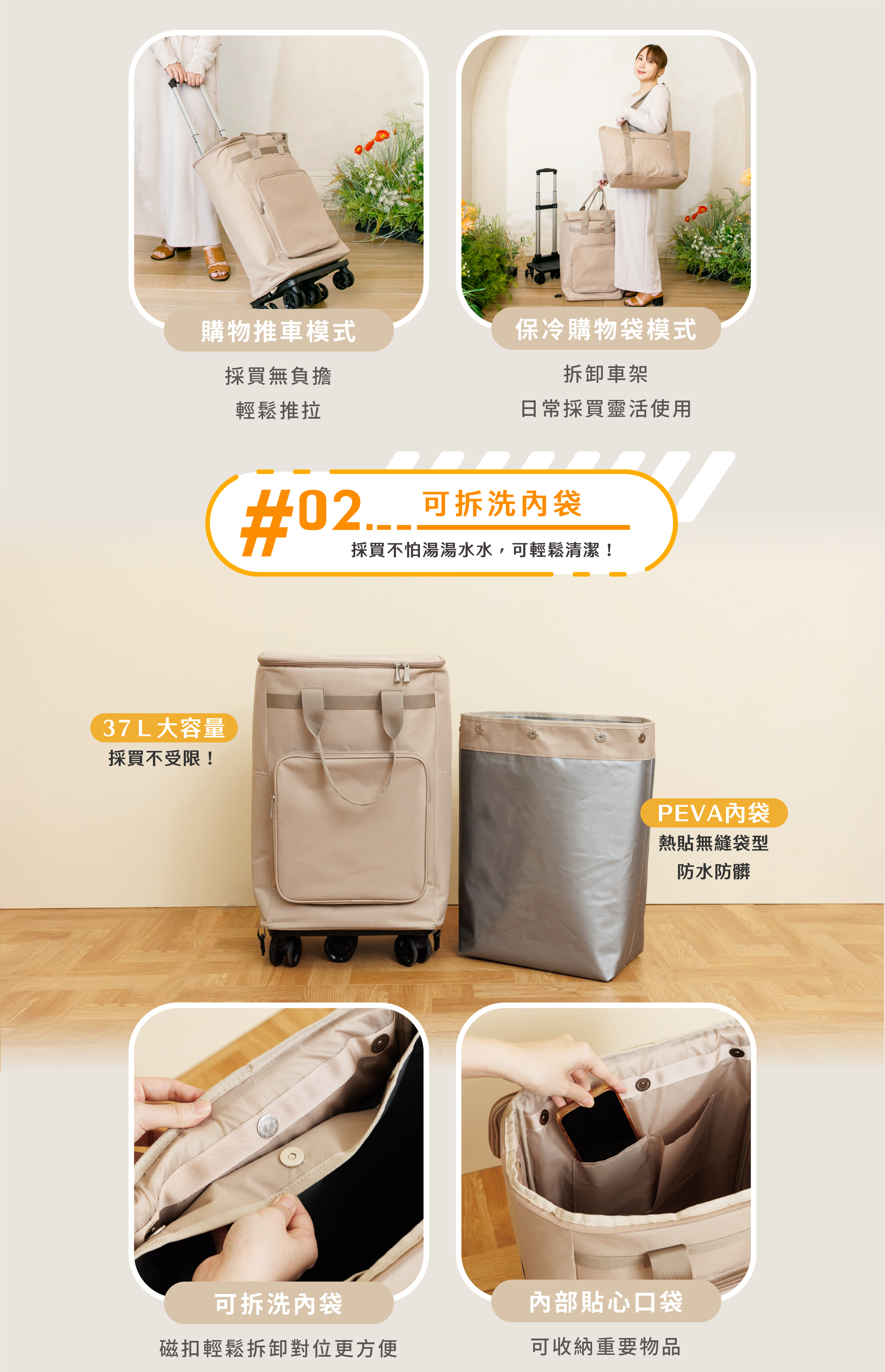 ‣ 多用途袋型|可作為保冷購物袋,拆卸內袋後可作為旅行收納袋