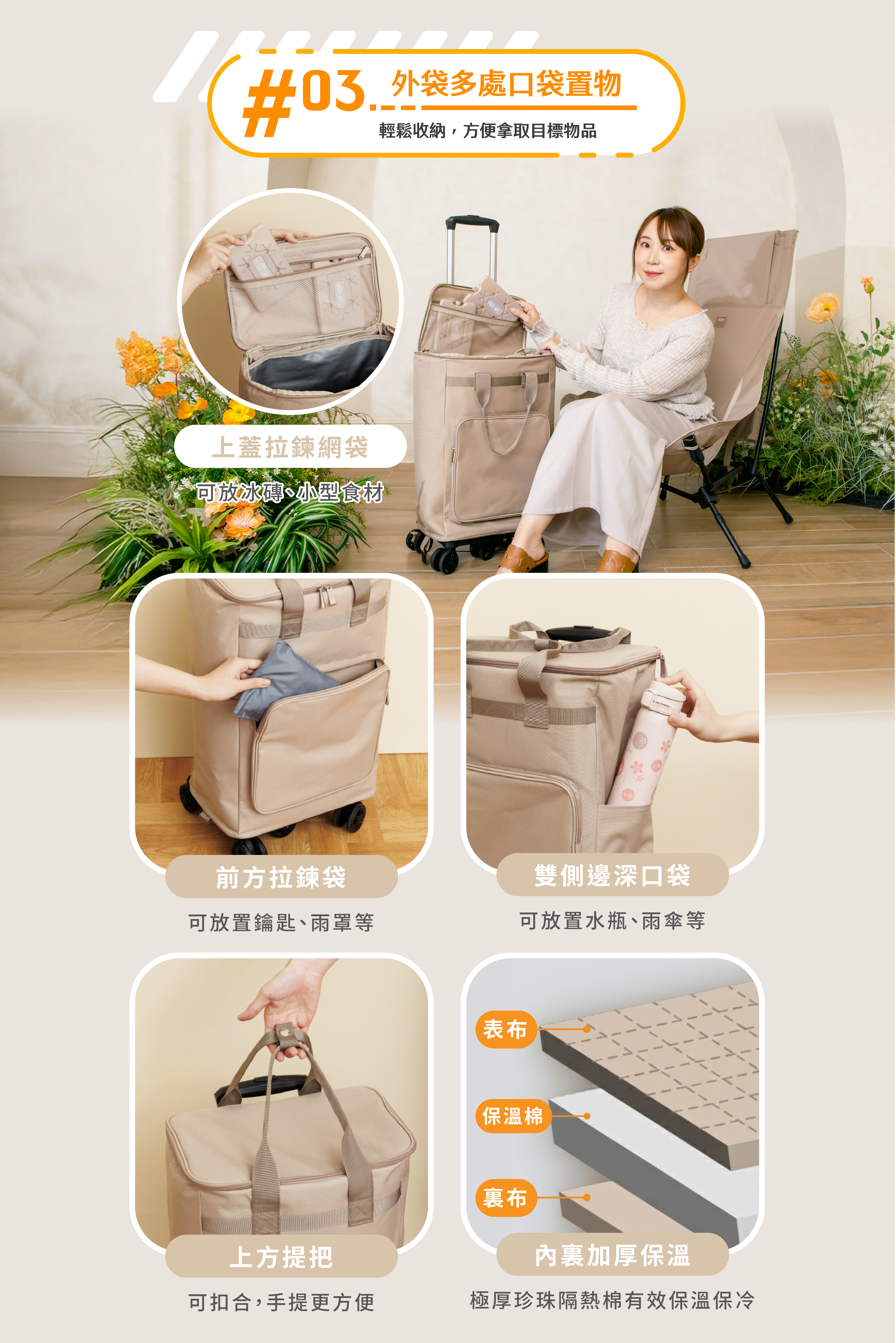 ‧本產品展開時請確保配件已卡住定位,避免拉桿或保冷袋鬆脫。