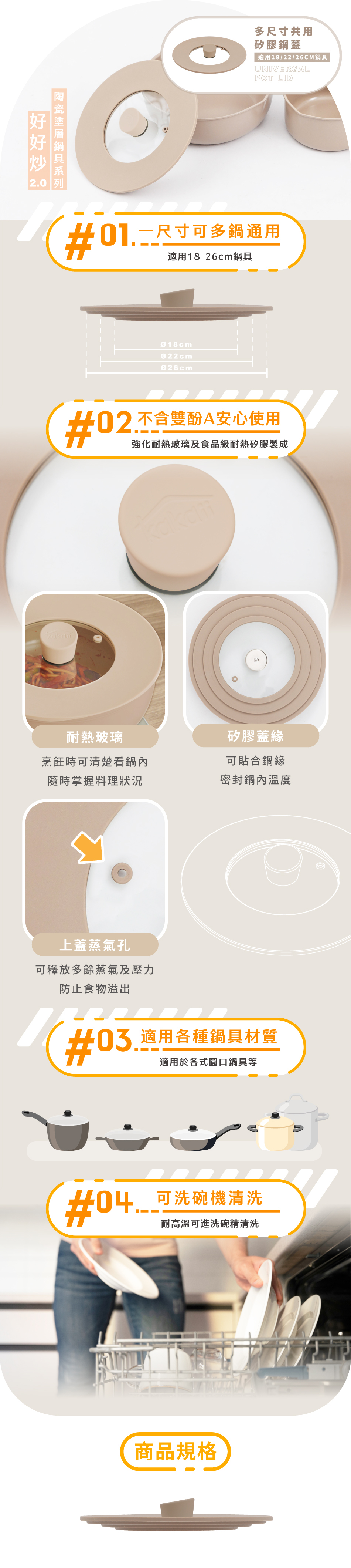 【現貨】好好炒多尺寸共用矽膠鍋蓋(適用18-26cm鍋具)